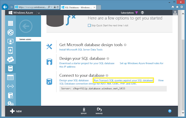 Go to the Azure Console and connect to your database.